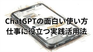 ChatGPTChatGPTの面白い使い方|仕事に役立つ実践活用法 ChatGPTの面白い使い方、仕事で悩む方へ。企画の壁打ち、メール作成、要約、ロールプレイング、議事録、プレゼン資料づくりに役立つ実践例と注意点をわかりやすく整理し、無料版のコツも紹介。ChatGPTの面白い使い方、仕事の疑問を具体的に解消します。 2026.04.04ChatGPT