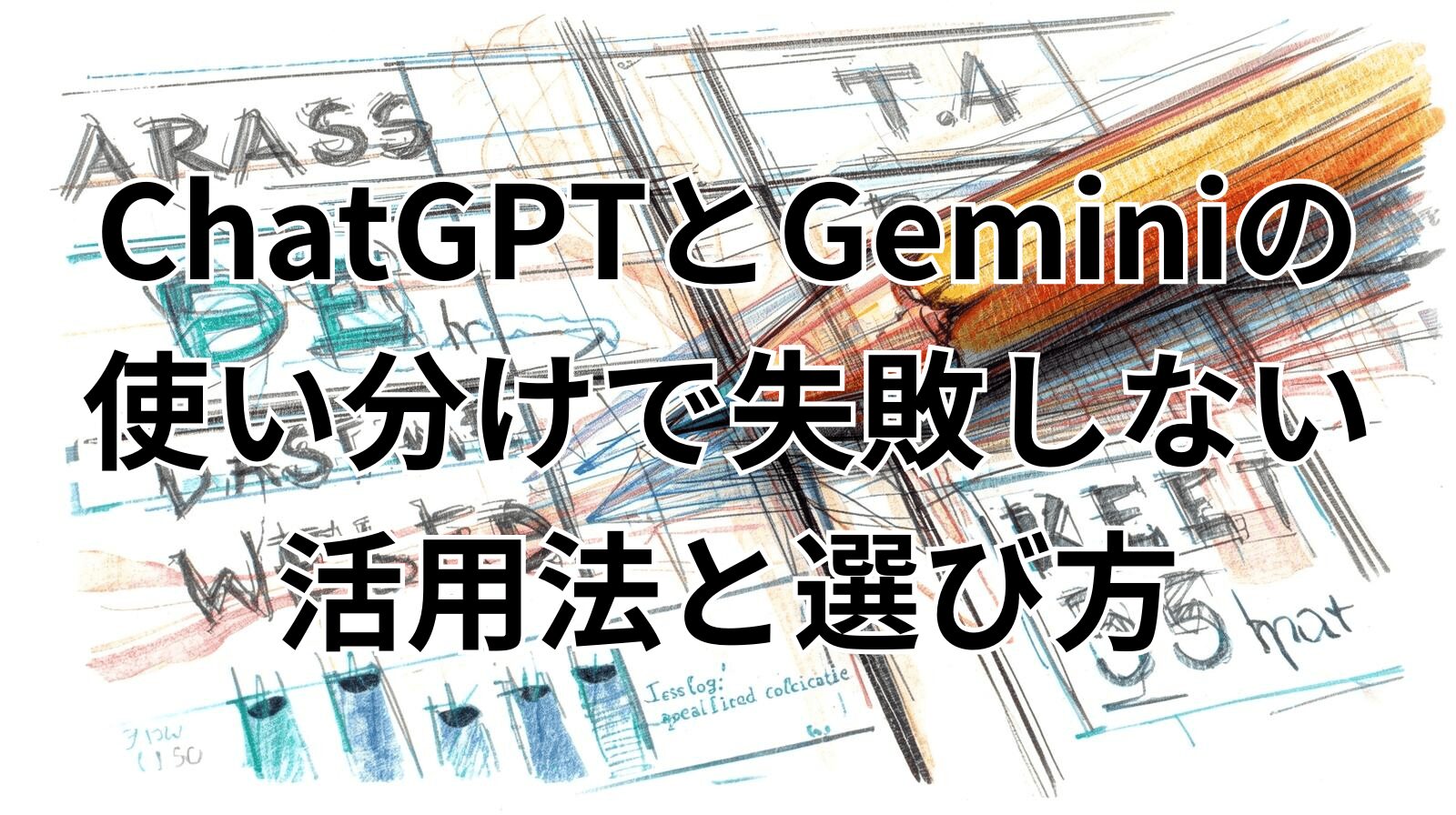 文章作成で迷ったら、構想はChatGPT、整文はGeminiと分けるとかなり使いやすいです。全部を一台に任せるより、工程で分けるほうが実務ではラクですよ。