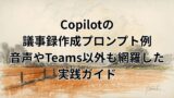 - オンライン会議の音声をライブキャプションで文字起こしし、終了後に要点だけをCopilotに整理してもらう