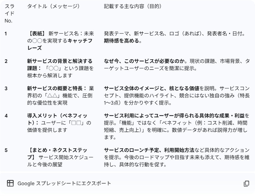 Geminiは、スライドの「構成を考える時間」を大幅に減らしてくれます。