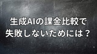 生成AI全般 生成AIの課金比較で失敗しないためには? 生成AIの課金比較で迷うあなたに、主要ツールの料金や無料版との違い、用途別の最適な選び方を解説。生成AIの課金比較でコスパよく失敗しないポイントを具体例付きで整理します。初めて課金する人も乗り換えを検討中の人も安心して判断できるようになります。 2025.11.26 生成AI全般